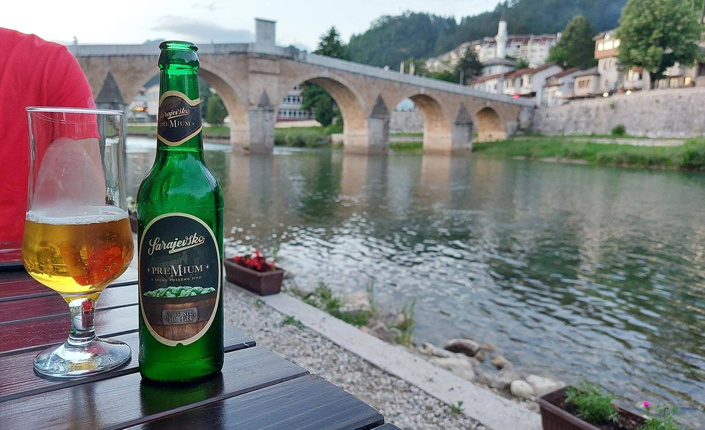 Este már az Öreg-híd köveit tapossuk, teli hassal, leöblítve a vacsorát egy jóleső Mostarskoval.