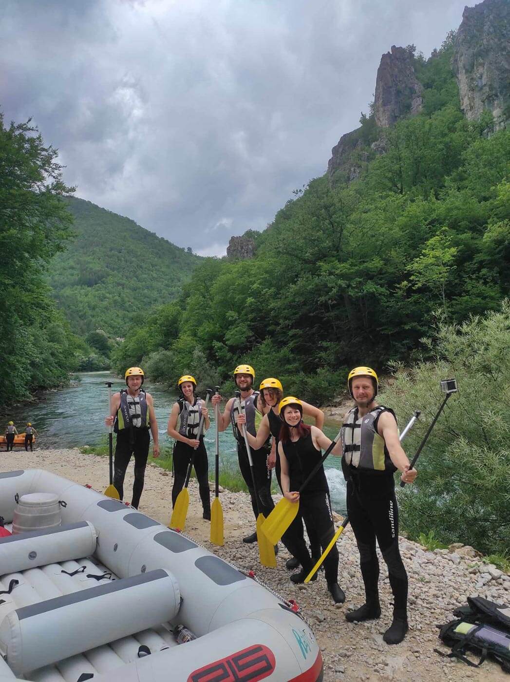 Délelőtt az egyik helyi rafting bázison neoprénbe öltözünk, majd elvisznek minket a kiindulási pontra, ahonnan gumicsónakjainkkal belevetjük magunkat a habokba. Az evezés közben kikötünk egy ebédszünetre, ahol vezetőink csevapot grilleznek nekünk a parton.