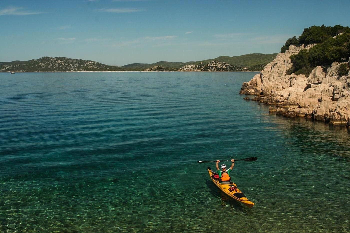 A nap hátralévő részét egy tengeri kajaktúrával töltjük a sziklákkal és öblökkel övezett dalmát riviéra partvidékén.