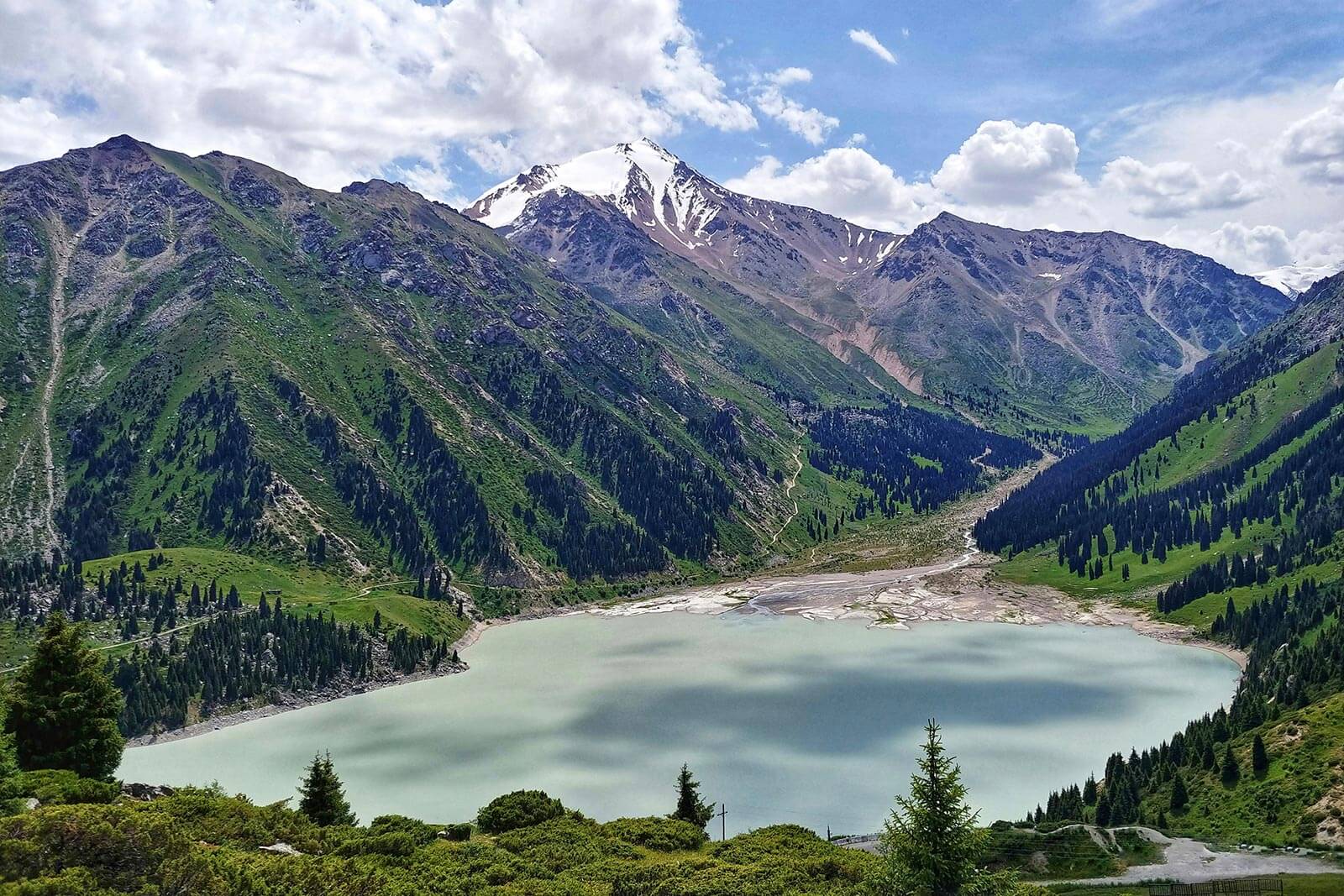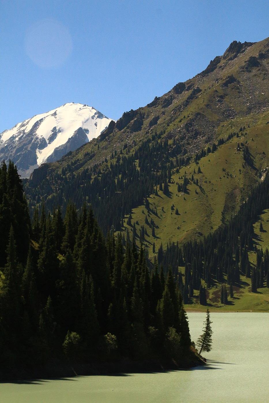 Reggel felutazunk a város vízellátását is biztosító türkizkék hegyi víztározó, a Nagy Almati tó alá. Innen még jónéhány óra gyaloglás vár ránk a tóhoz kanyargó út szerpentinjein, ahol azért még bőven találkozunk kirándulókkal, hiszen a könnyen megközelíthető tó az Almatiba látogató turisták kötelező programpontja.