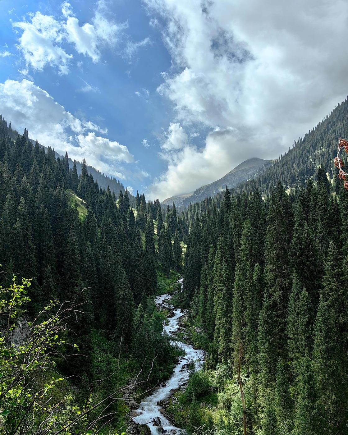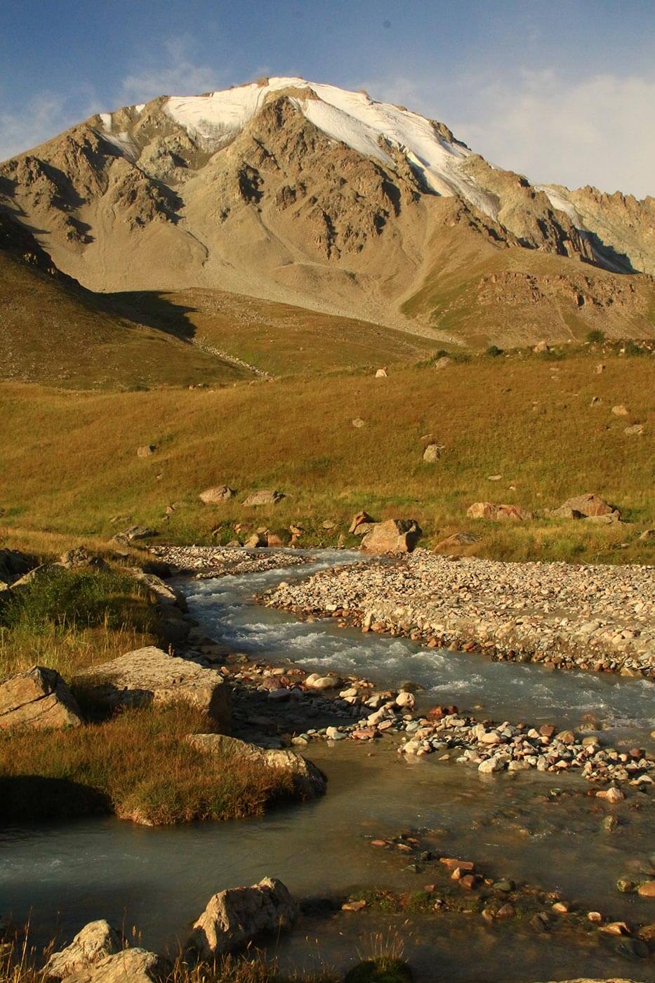 Reggel összepakoljuk sátrainkat, és elindulunk a Nagy Almati folyó dübörgő vize mentén.