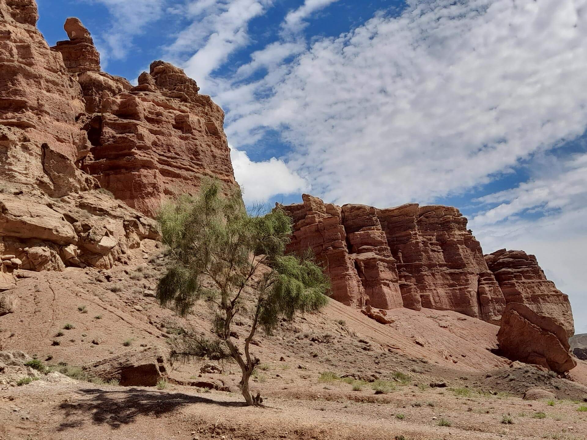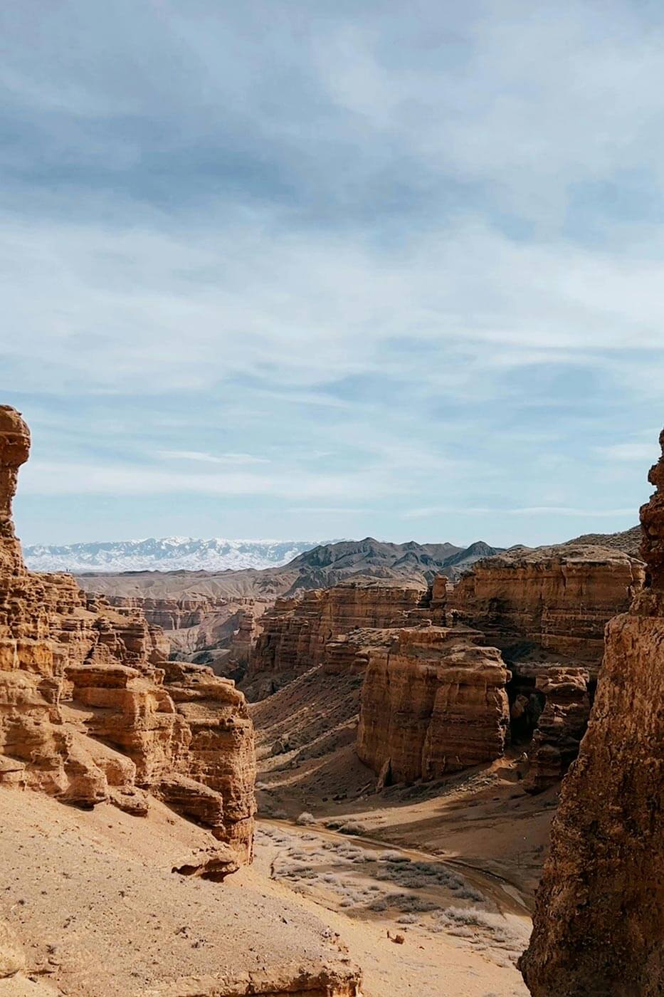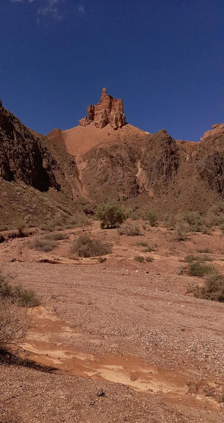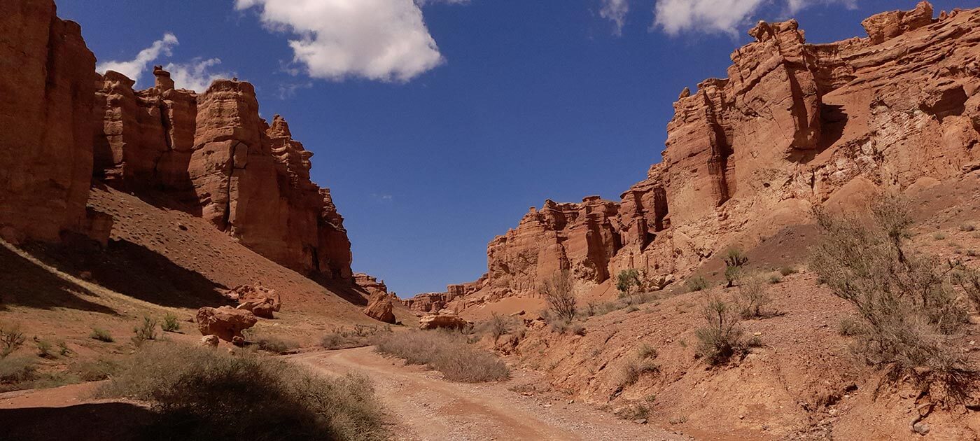 Reggel elindulunk Délkelet-Kazahsztán egyik legismertebb természeti látványossága, a Charin-kanyon felé. Átvágva a „Hét-Folyó” termékeny síkságán – és néhány hegyláncon – a sztyeppe egyre kietlenebb, sivatagosabb képet ölt. Itt kanyarog a Tien-sanban eredő Charin-folyó, amely itt, a hegyek lábánál mélyen felszabdalta az üledékes kőzeteket egy 150-300 m mély kanyont mélyítve magának. A kanyon falát bizarr sziklaformák díszítik, olyan érzése támad az embernek, mintha egy westernfilm forgatási helyszínére csöppent volna. Sziklatornyok, vízmosások, bizarr sziklafalak keretezik utunkat. Nemhiába hasonlítják a Charin-kanyont a Grand Canyonhoz.