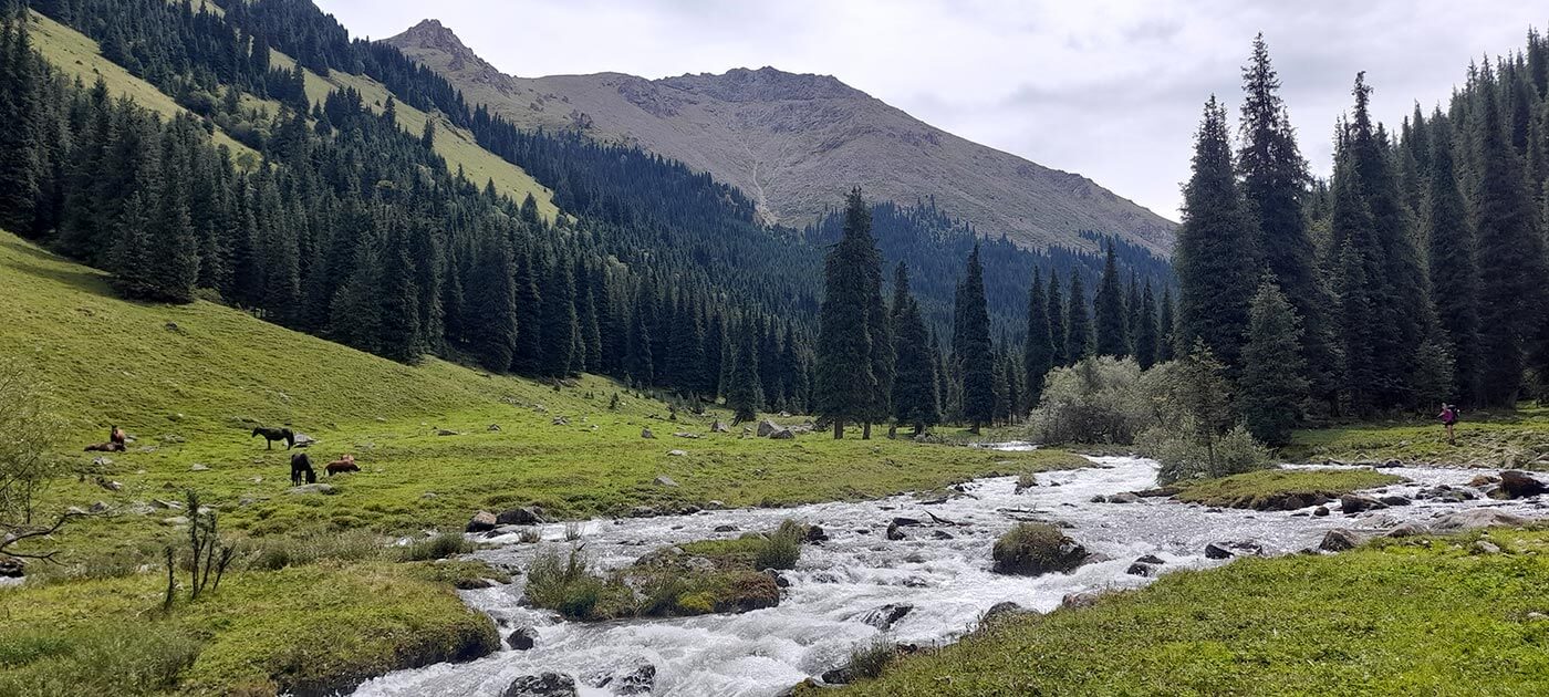 A völgyben három tó türkizkék vize csillog egymás felett a völgyben. Ezeket látogatjuk ma meg. A dübörgő Kolsay-folyót hatalmas fenyvesek övezik, melykre a koronát a távolban a Tien San havas csúcsai teszik fel. A Középső-Kolsay tónál megebédelünk, és aki érez még energiát, azokkal feltúrázunk a Felső-tóhoz. Aki meg csak heverészni szeretne a havasi réten a tó partján, az megteheti, hiszen a Felső-tótól ugyanitt jövünk vissza…
