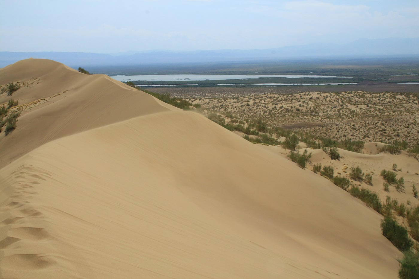 Reggel egy rövid, másfél órás zötykölődés után megérkezünk a hegyek lábához, ahol hatalmas, 120 méter magas homokdűne fogad: az Éneklő-dűnék a jégkorszak óta vándorolnak. Miután felmásztunk a dűnékre, elindulunk keresztül sztyeppéken, hegyeken és völgyeken. Azért útközben még megállunk egy óriási kövekből rakott dolmennél – hiszen Dzsingisz Kán csapatai is megpihentek itt egykor.