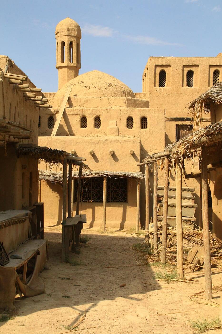 Reggel még teszünk egy kitérőt, hogy az Ile-folyó túlpartjára utazzunk. A folyóparton építették fel egy évtizede azt a mesterséges várat, ami több film színhelyéül szolgált, többek közt a Nomád forgatási színhelye volt. Az omladozó díszletek között olyan érzés, mintha a középkori selyemút egyik városába csöppentünk volna – csak éppen emberek nélkül.