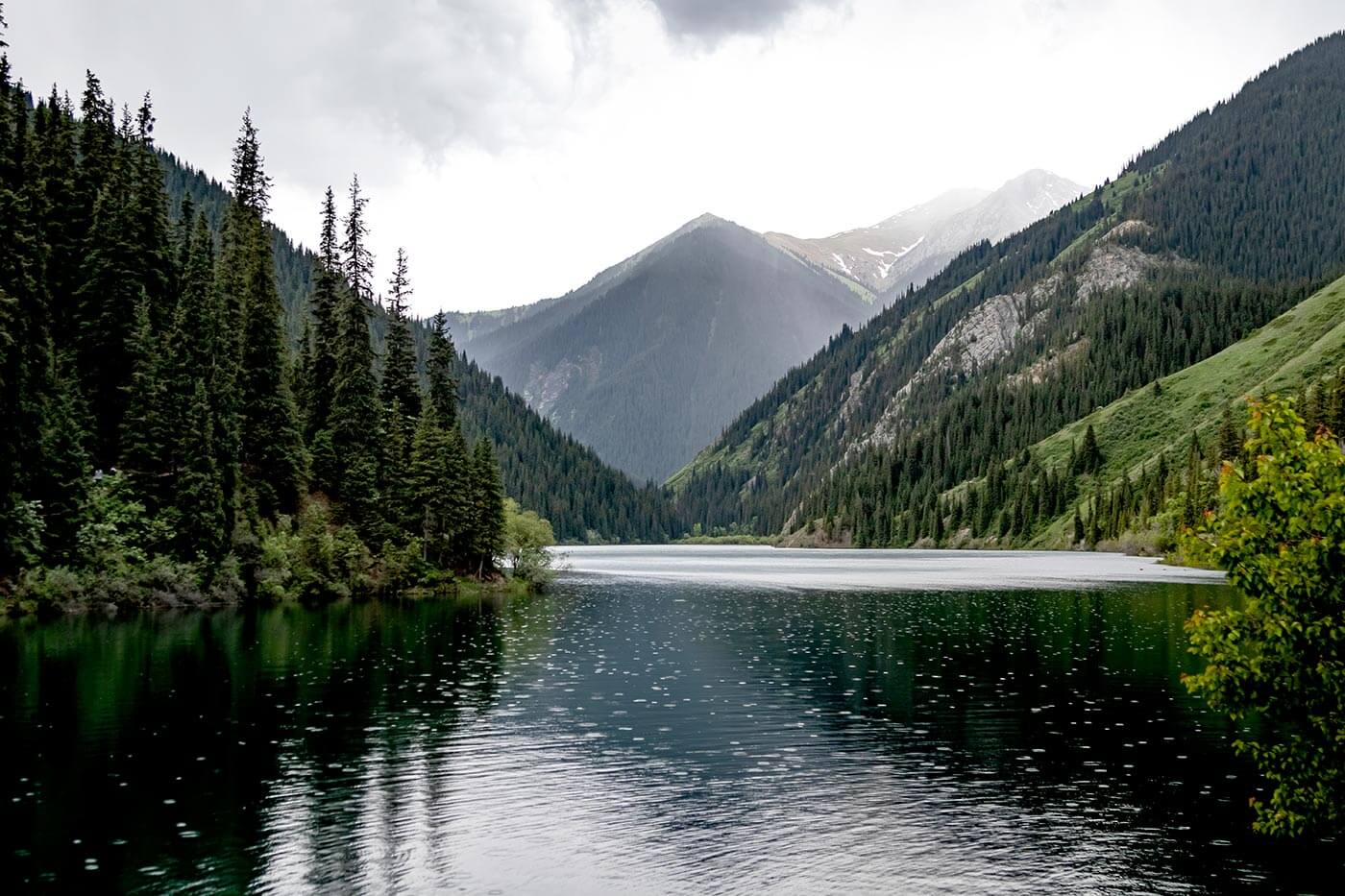 Ahogy közelítünk a hegyek felé, megváltozikk a táj: a sztyeppét a ligetes erdők váltják fel, majd virágzó havasi rétek méregzöld karcsú fenyvesek, és bömbölő hegyi folyók keresztezik utunkat. A délutáni órákban érkezünk meg a Tien-san hegyvonulatai közé zárt türkizkék hegyi tó partjára, a földcsuszamlás által létrejött Kolsay-tavakhoz.