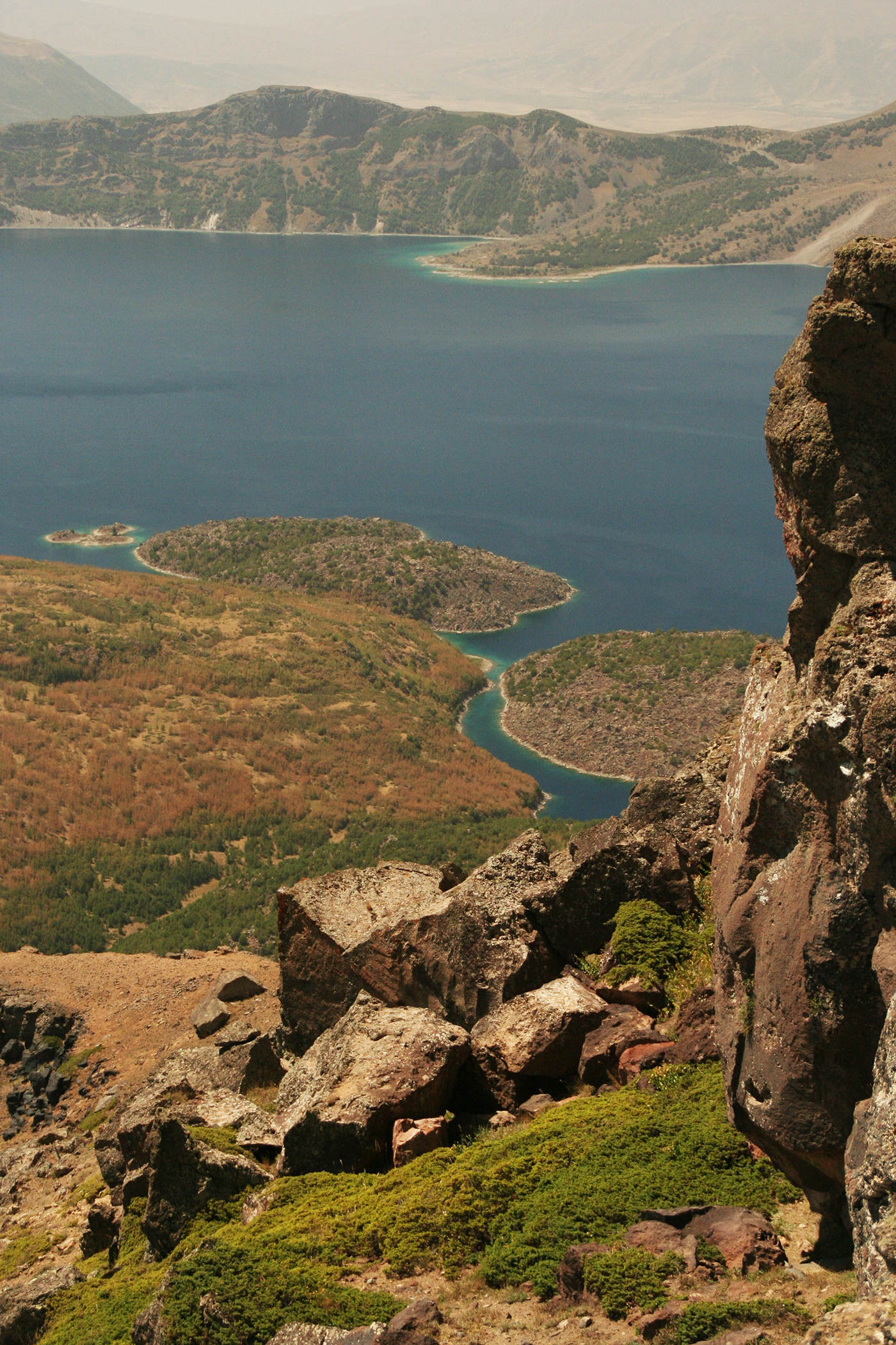 Nemsokára a Van-tó vulkáni csúcsok keretezte vize mellett utazunk az egykori szeldzsuk főváros, Ahlat felé. Sétálunk egyet az egykori nekropolisz faragott kősztéléi között, majd újra irány a hegyek: a szomszédos Nemrut-vulkán egykori kalderájába utazunk. A hegy már évszázadok óta szunnyad, így kráterét egy égszínkék, hideg vizű tó tölti ki. A mellette található zöldes szomszédos tó vizét feltörő termálforrások fűtik, így aki akar, pancsolhat is egyet 2300 méteren.  Itt egy néhány km-es túrára indulunk a kráter peremén, ahonnan közel háromezer méteres magasságból csodálatos kilátás nyílik a kaldera alján csillogó tavakra.