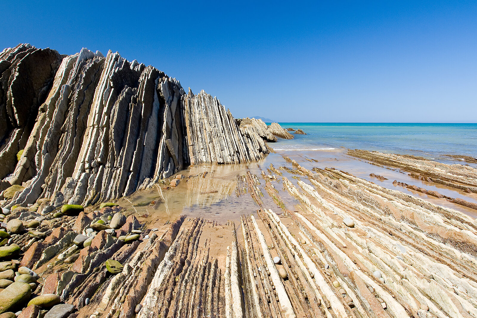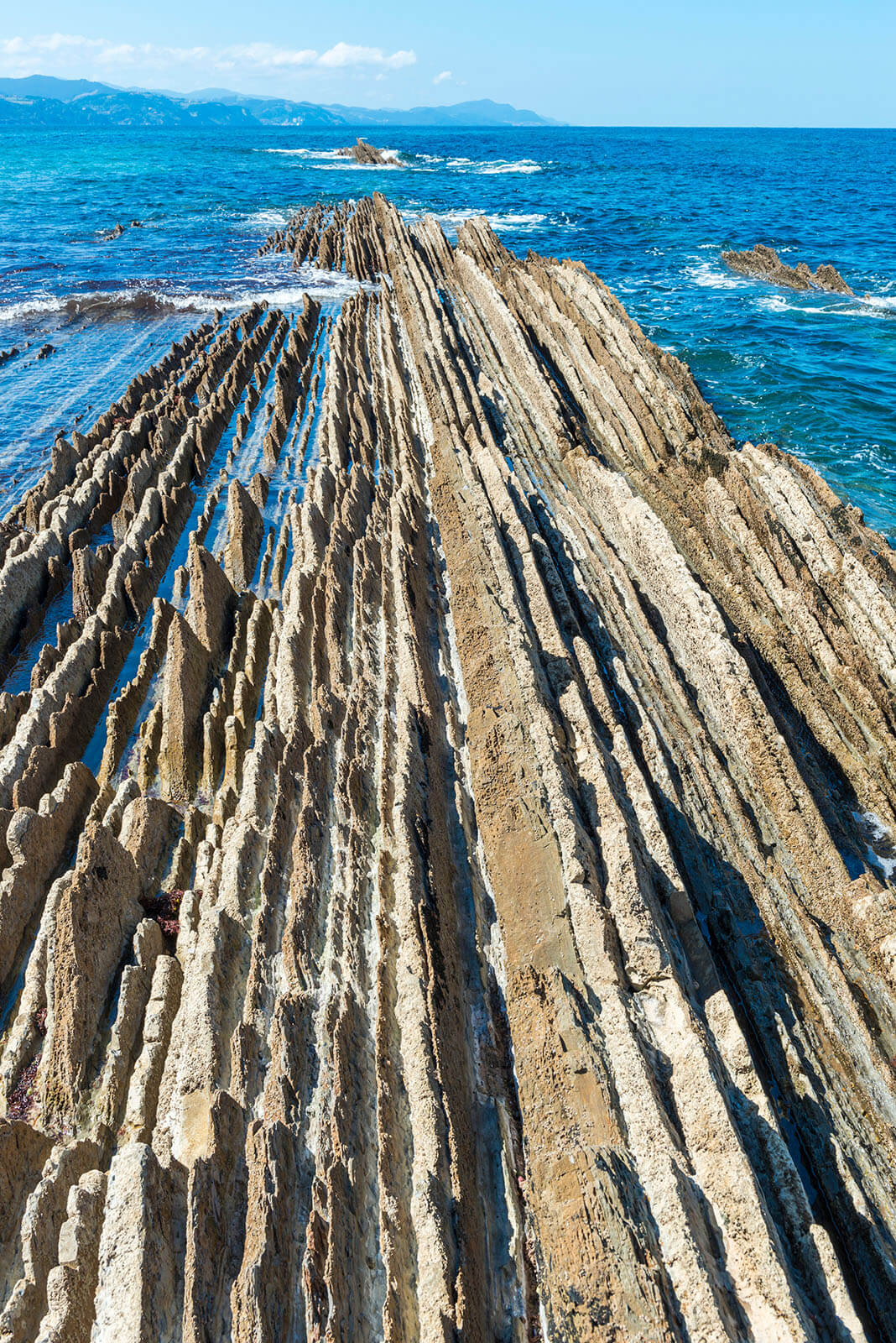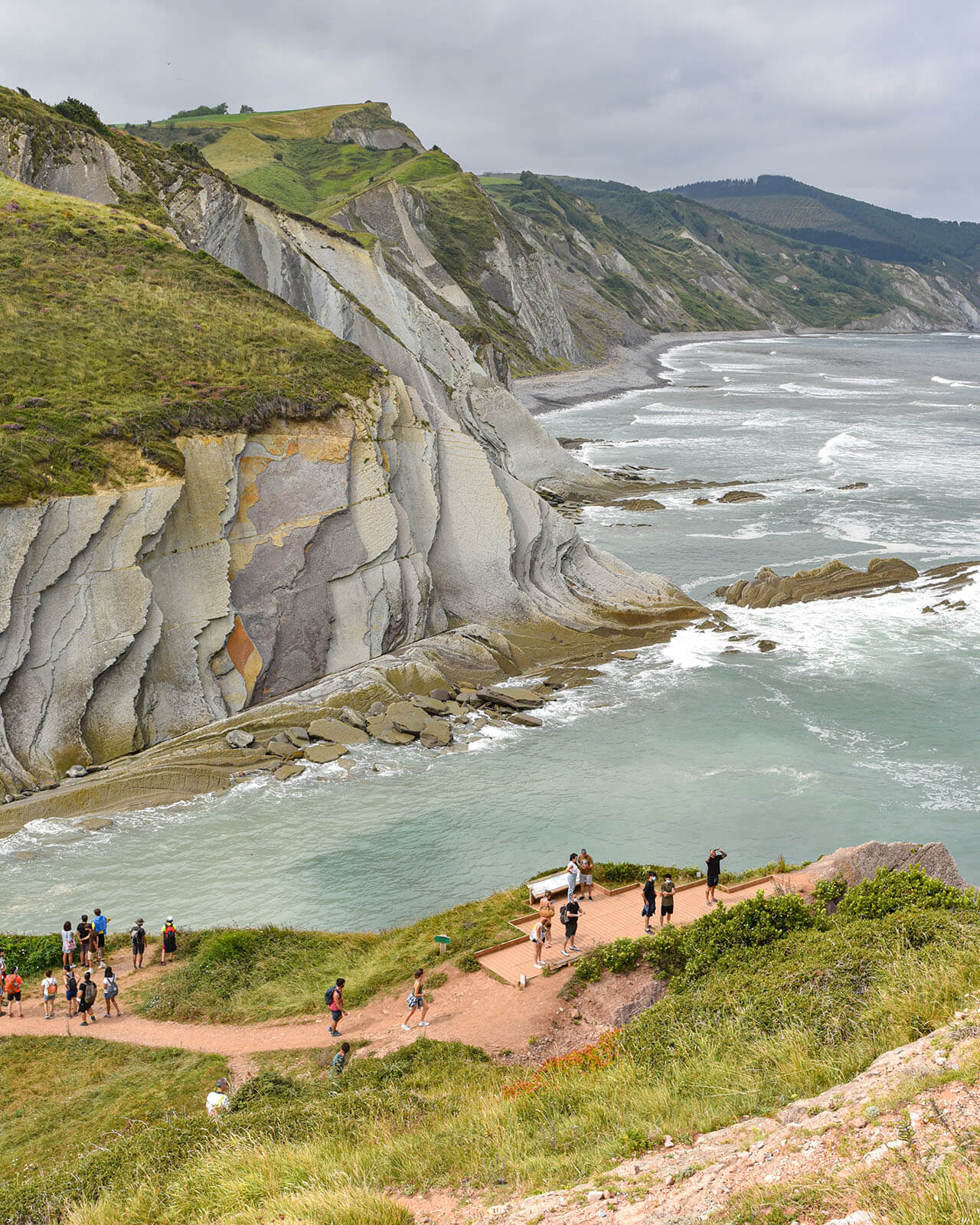 Reggel elhagyjuk Bilbaót és a közeli Zumaia településre utazunk. Itt az egykori tengeri kavicsos-homokos üledékből összeállt kőzet meredek sziklafalakkal emelkedik az óceán fölé. A függőlegesbe fordult kőzetrétegek drámai sziklafalakat hoztak létre: itt túrázunk egyet a bizarr sziklaformációk között.