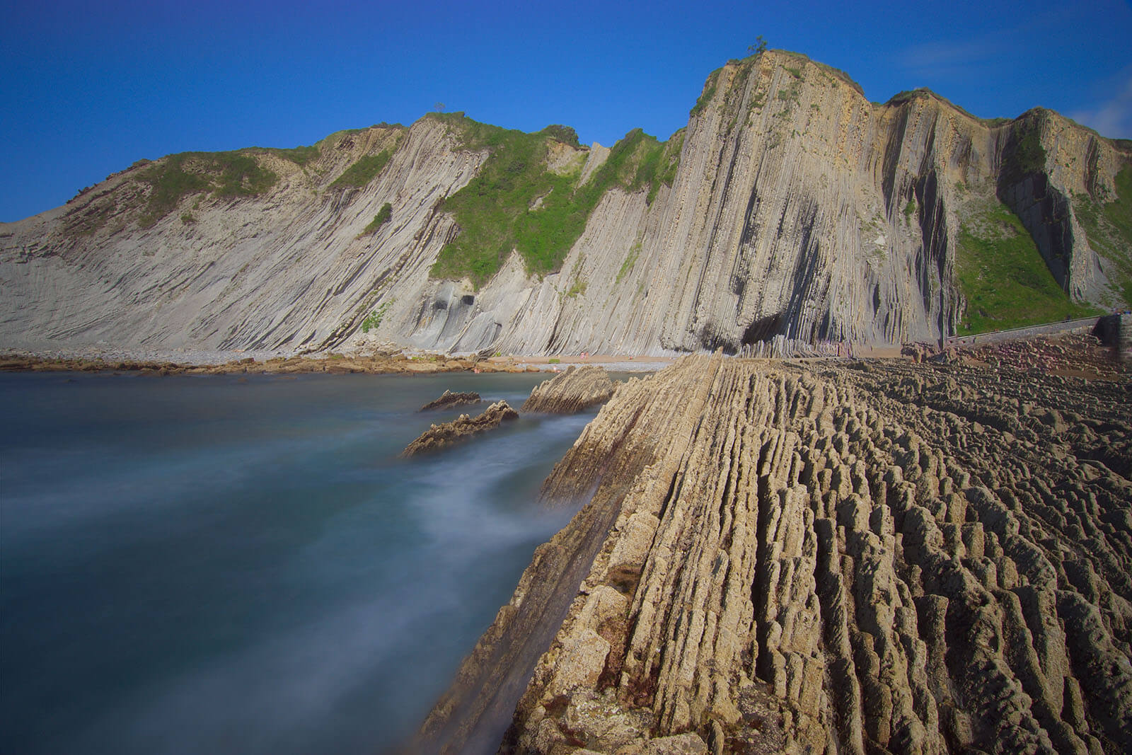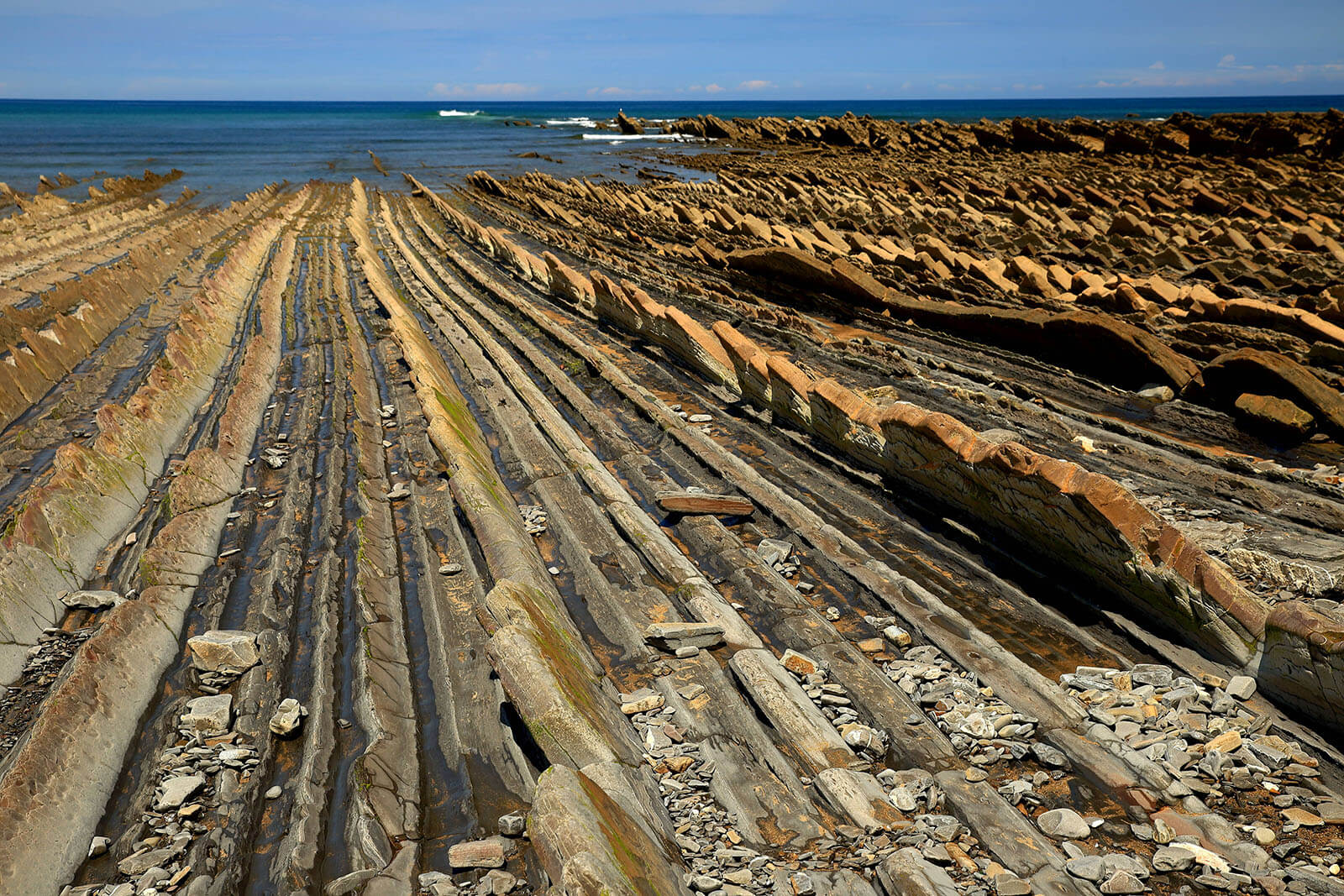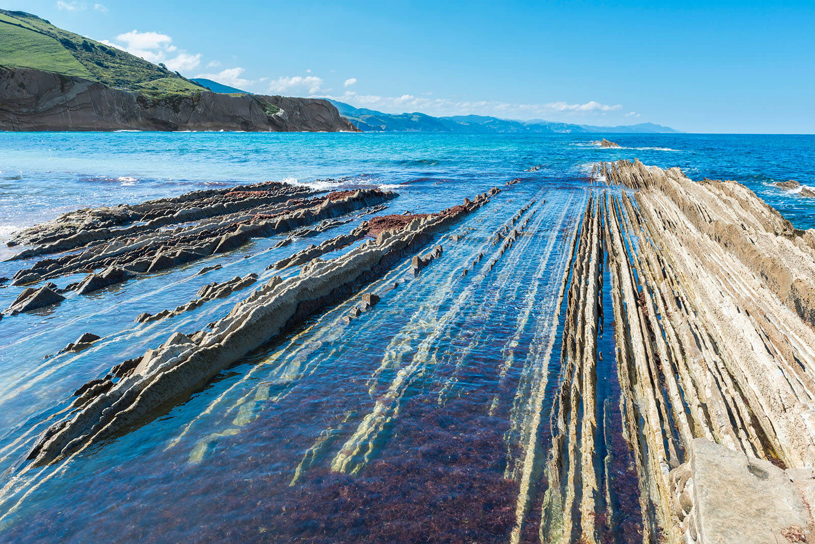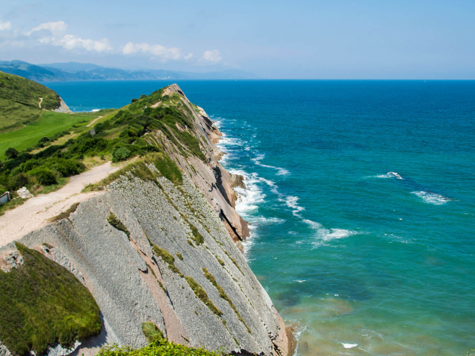Reggel elhagyjuk Bilbaót és a közeli Zumaia településre utazunk. Itt az egykori tengeri kavicsos-homokos üledékből összeállt kőzet meredek sziklafalakkal emelkedik az óceán fölé. A függőlegesbe fordult kőzetrétegek drámai sziklafalakat hoztak létre: itt túrázunk egyet a bizarr sziklaformációk között.