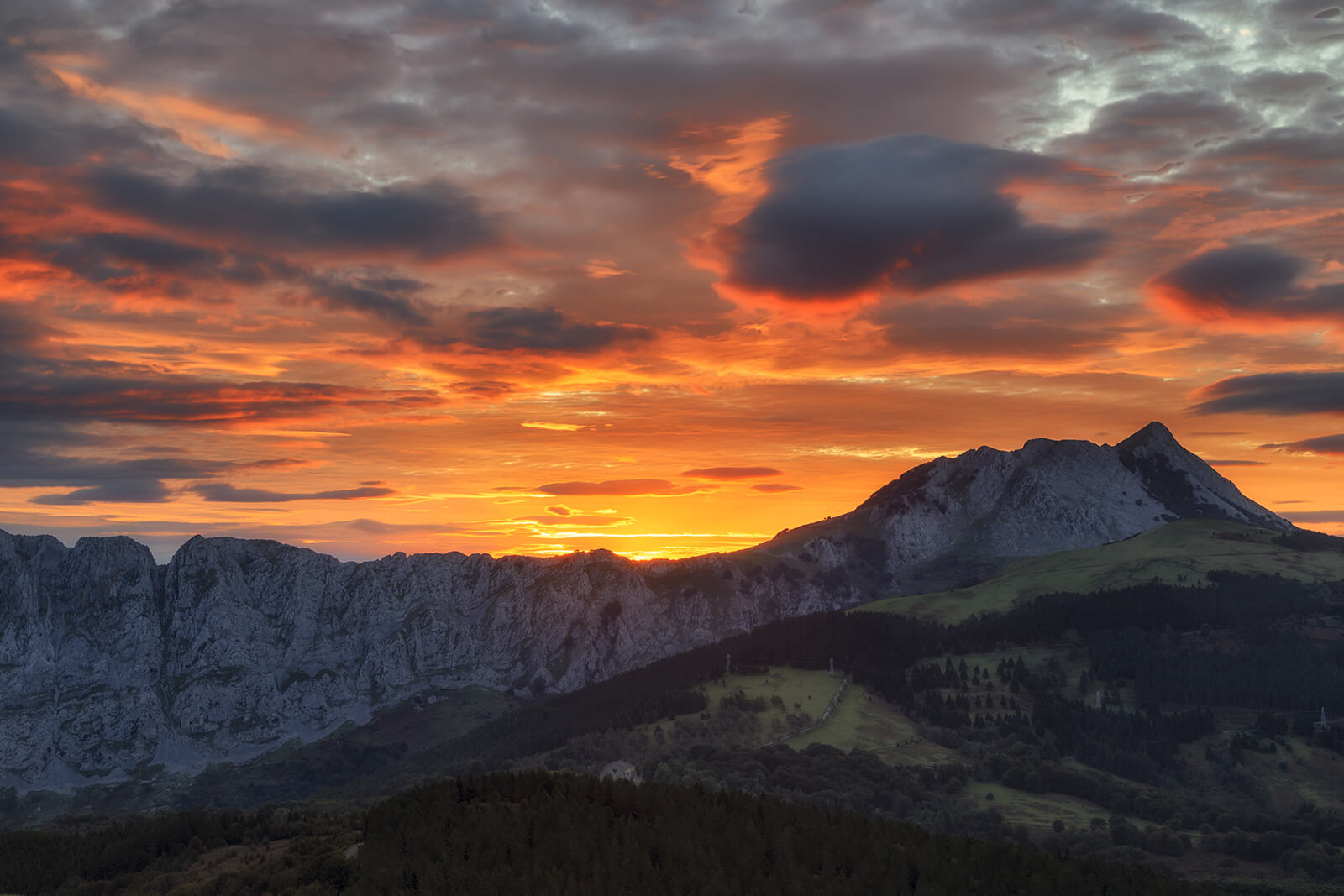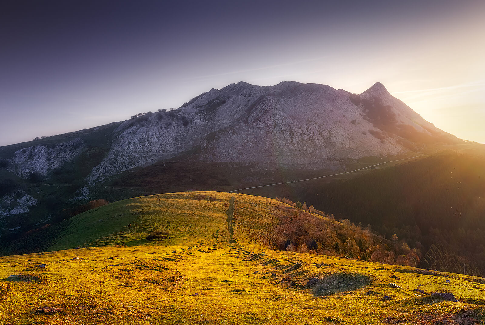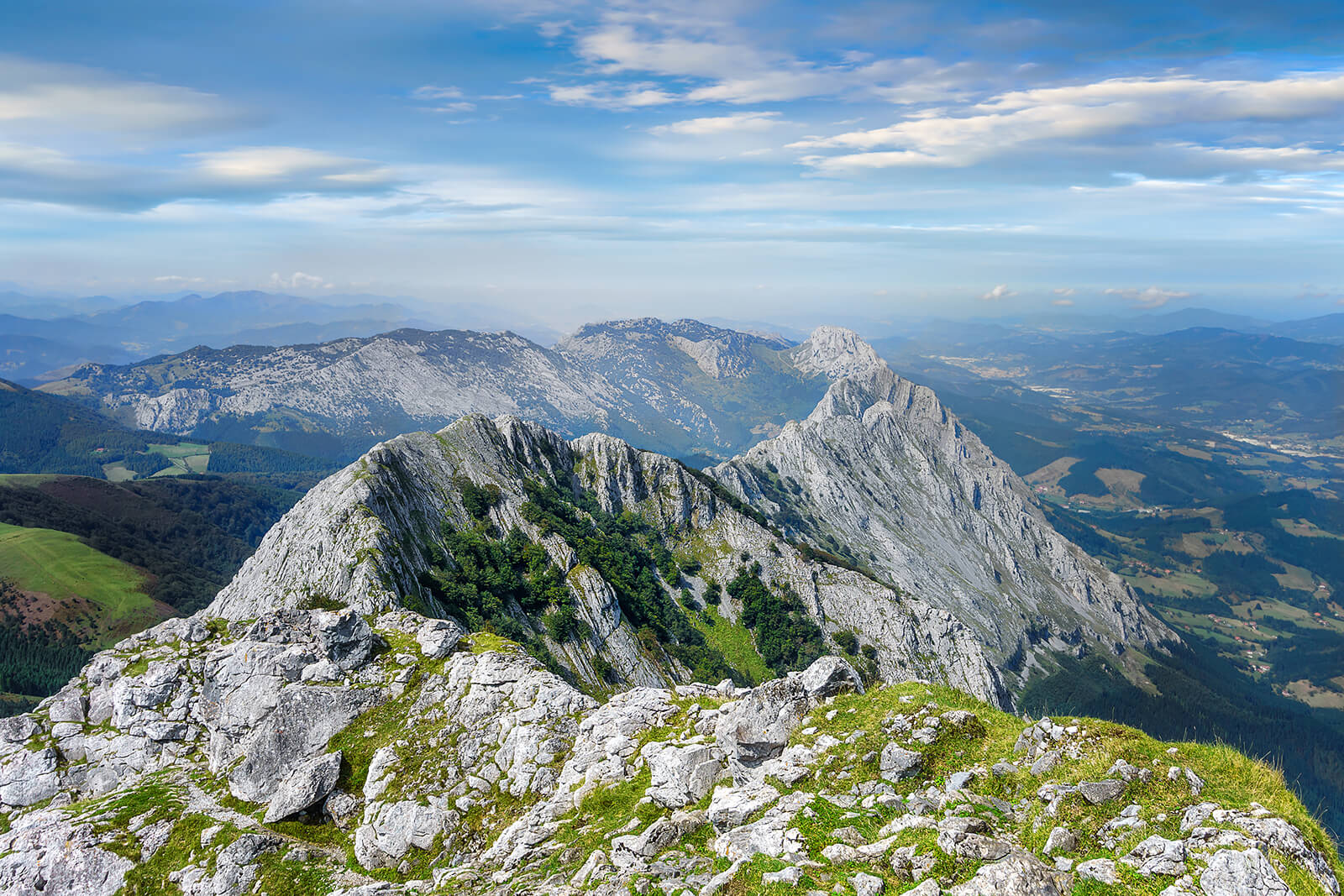 Urkiola településen hagyjuk kisbuszunkat, és fenyvesek, zöldellő alpesi rétekközött vezet az utunk a sziklás gerinc alá. Innen egy meredek kaptató után érünk fel az Anboto sziklás gerincére, ahonnan páratlan kilátás nyílik az alattunk hullámzó, zöldellő erdőkkel, sziklás csúcsokkal és mély völgyekkel tarkított Baszkföldre és távolban az óceánra. A csúcscsokik elfogyasztása után elindulunk vissza a sziklás gerinceken majd a hygi legelőkön keresztül kisbuszunkhoz.