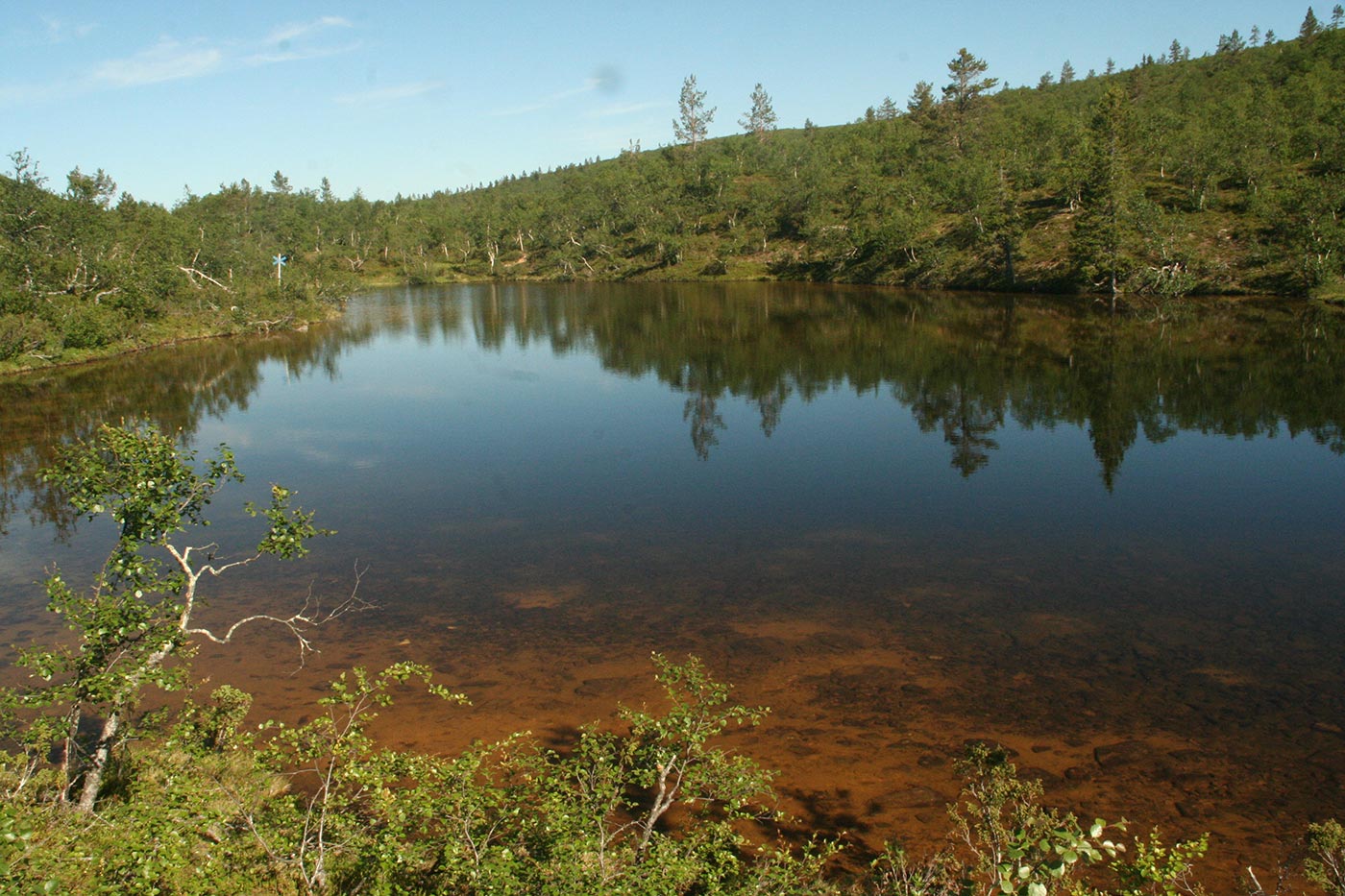 Reggel – már jól kitaposott, kijelölt turistaúton – követjük a patakot, mely hol tőzeglápokban tűnik el, hol tóvá szélesedik.